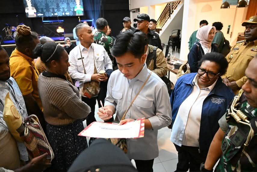 Papua – Wakil Presiden (Wapres) Gibran Rakabuming bertemu dengan para pegiat kopi dan pelaku ekonomi kreatif di Wamena, Provinsi Papua Pegunungan, Selasa (13/01/2026) malam.